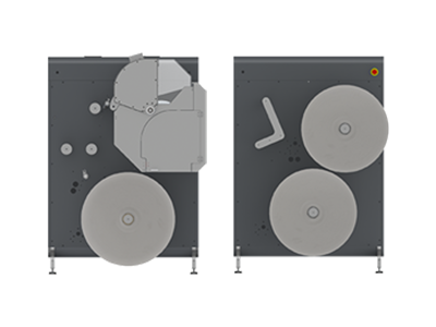 In short-run production, the operator spends a lot of time at the rewinding station, so we have given this area special attention adding stepless tension and easy to use quick-change mode with pneumatic airshafts. The rewinding section can be configured with a standard dual rewinder or a turret rewinder. In turret rewinding mode, there is the option of semi-automatic (operator web cutting) or fully automatic (automated cutting). With a changeover time of less than 10 seconds, this is one of the fastest systems on the market. |